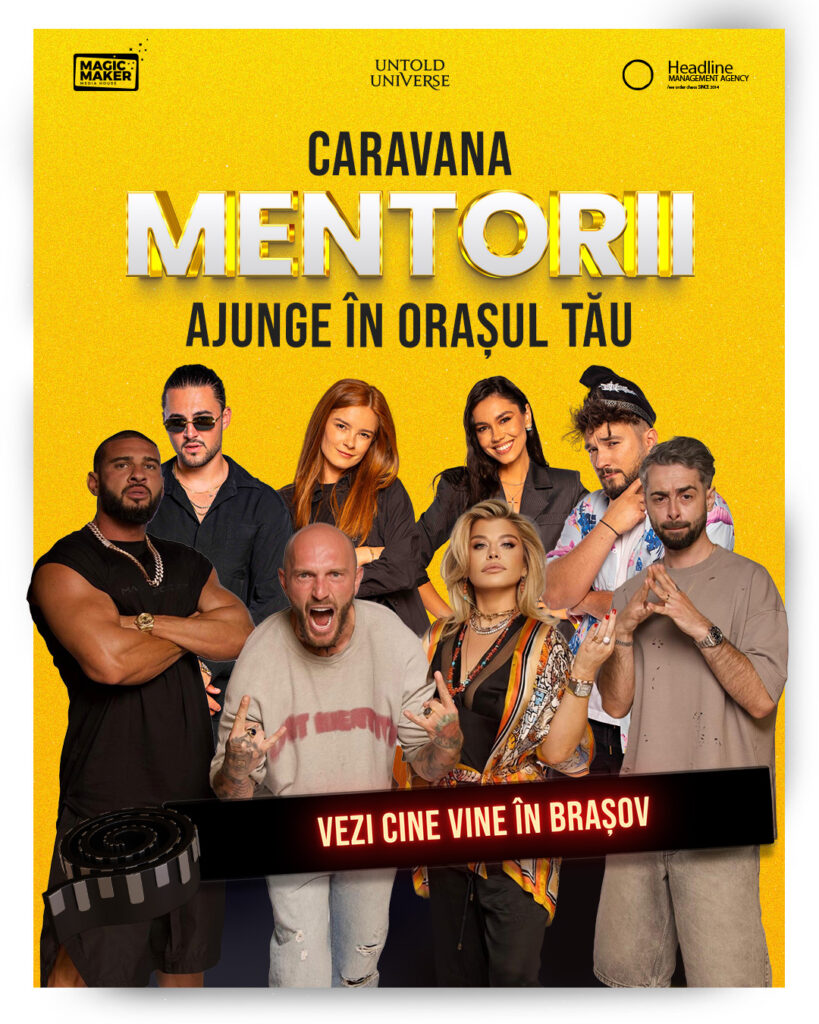 MENTORII, unul dintre cele mai așteptate filme românești de comedie ale anului, își continuă turneul de promovare și ajunge la Brașov, sâmbătă, pe 22 februarie. Fanii filmului vor avea ocazia să participe la proiecții speciale și să-i întâlnească pe unii dintre artiștii din rolurile principale ale lungmetrajului. Filmul va putea fi văzut la Cinema One și Cinema City AFI Brașov în cadrul unor evenimente speciale, unde vor fi prezenți Cătălin Bordea, Doina Teodoru și Radu Bucălae, alături de alți membri ai echipei. Aceasta este o oportunitate unică pentru fani de a descoperi detalii din culisele producției și de a interacționa direct cu vedetele din film. Comedia MENTORII va intra în cinematografele din toată țara pe data de 28 februarie.