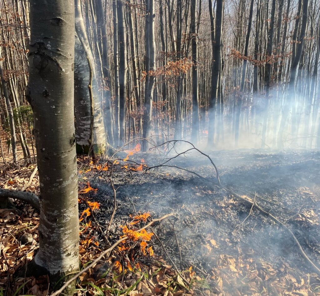 „În jurul orei 16.15, un incendiu de fond forestier a fost anunțat în zona dintre Teliu și Brădet, în apropiere de Întorsura Buzăului.
